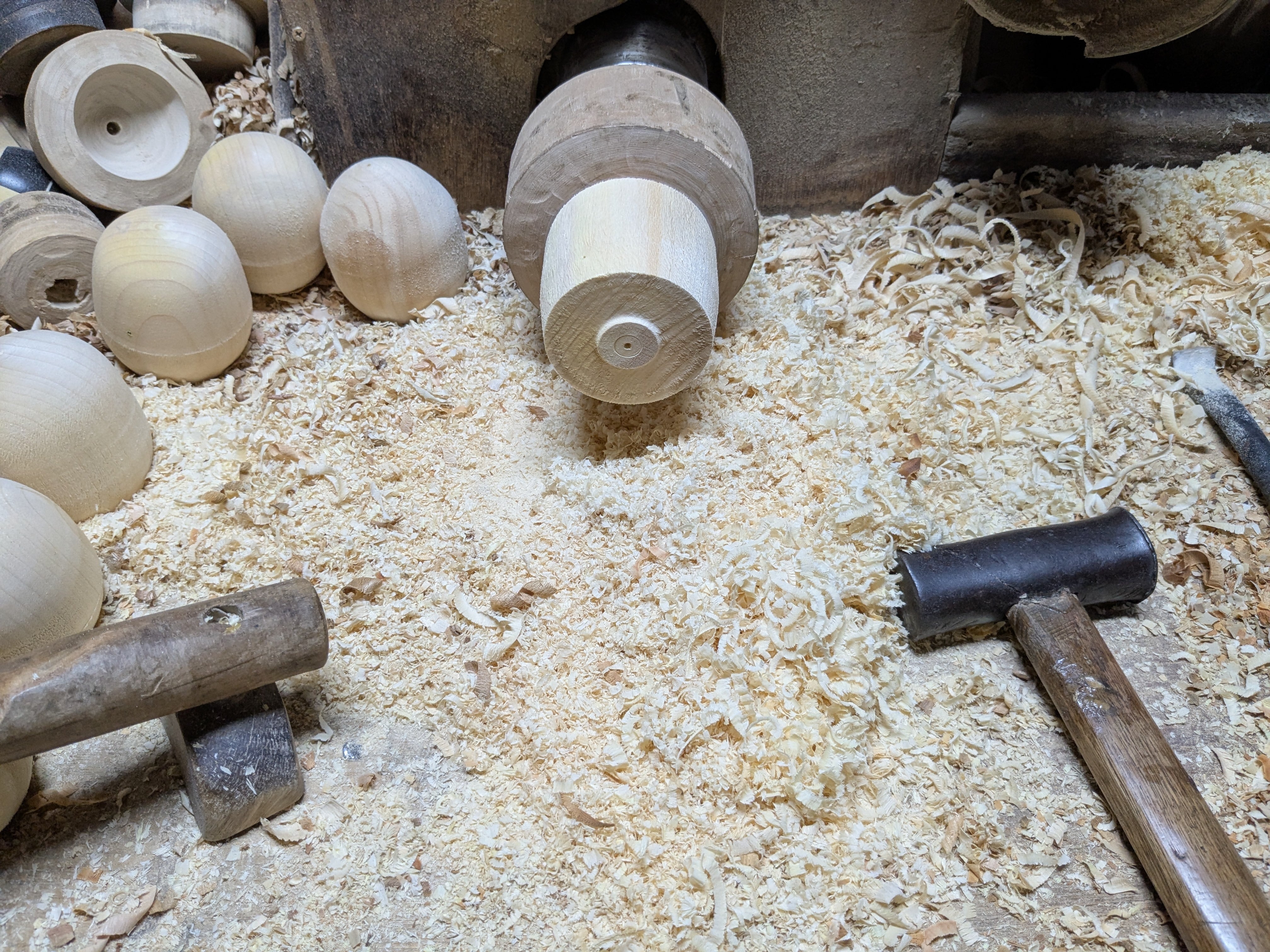 こけしは大きく2種類に分けられます。東北地方で生まれ、丸い頭に円筒系の胴体がくっついた「伝統こけし」と、伝統的な技術を用いながらも自由な発想で作られる「創作こけし」です。ろくろくは、日本各地の伝承や説話をモチーフにした、ちょっといいことがありそうな「創作こけし」をつくります。